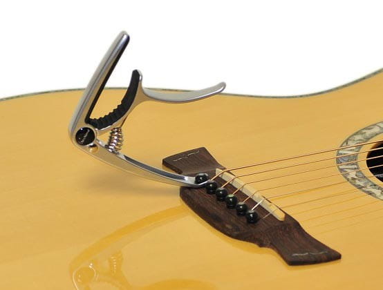 Lekki, solidny kapodaster z mocną i trwałą sprężyną gwarantującą odpowiedni docisk wszystkich strun do gryfu. W miejscach stykania się z gryfem i strunami zastosowano specjalną gumę zapobiegającą zarysowaniom lub uszkodzeniom. Łatwy i szybki montaż powoduje, że zmiana tonacji nigdy nie była tak prosta jak teraz.