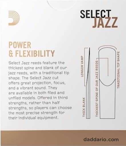 - Oryginalne cięcie stroików z serii Select Jazz zapewnia niezrównaną elastyczność i precyzję artykulacji oraz zmian interwałowych