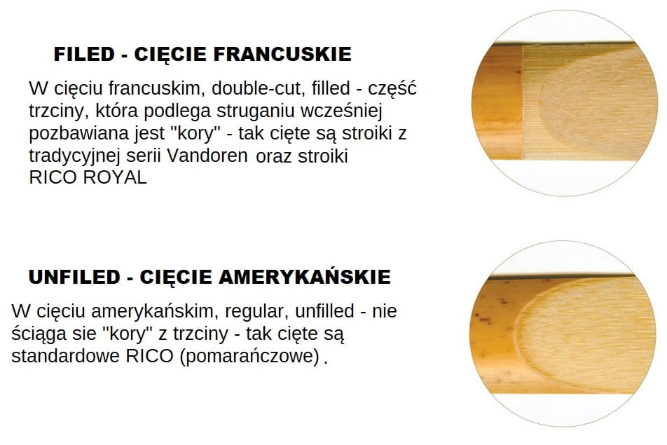 - Stroiki o cięciu francuskim (filed) z wysokiej jakości trzciny (Premium) - doskonała projekcja, ostrość i żywość dźwięku.