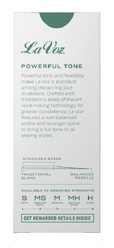 Stroiki do saksofonu z serii La Voz są wybierane głównie przez muzyków jazzowych ze względu na mocne brzmienie i elastyczność. Stroiki z tej serii, wytwarzane specjalną technologią opracowaną przez D'Addario, charakteryzują się dobrze wyważonym profilem i mocniejszym grzbietem, aby zapewnić pełny ton we wszystkich stylach gry.