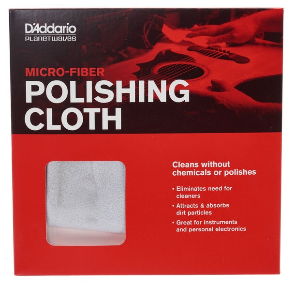Ściereczka Planet Waves więzi drobinki zabrudzeń we włóknach i eliminuje konieczność używania środków chemicznych mogących uszkodzić instrument.