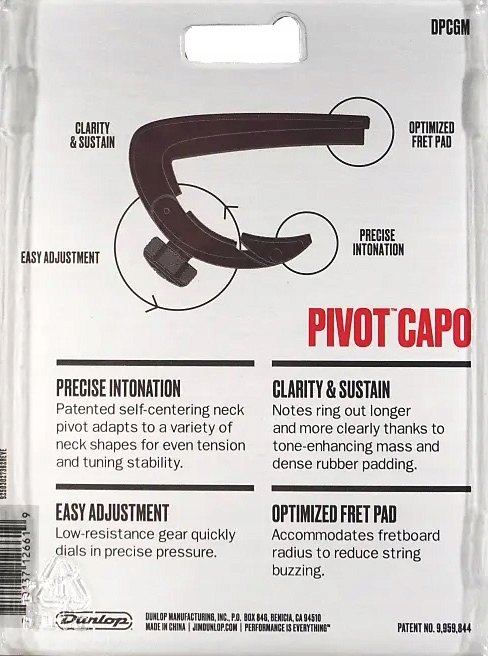 Dunlop DPCBK Pivot Capo Black to profesjonalny kapodaster do gitary, łączący precyzję działania z solidną konstrukcją i eleganckim wyglądem.