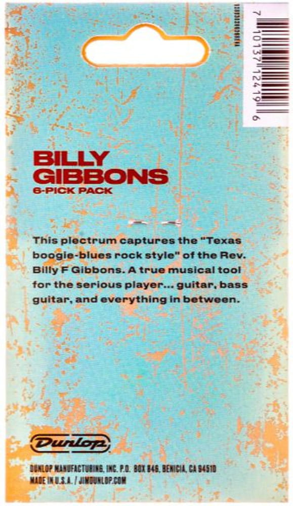 Zestaw kostek gitarowych DUNLOP - BILLY GIBBONS / REV. WILLY'S / 6szt. Firma Dunlop wydając serię kostek ZZ TOP / REV. WILLYS postanowiła uczcić szalonego lidera zespołu ZZ TOP, Billego Gibbonsa.