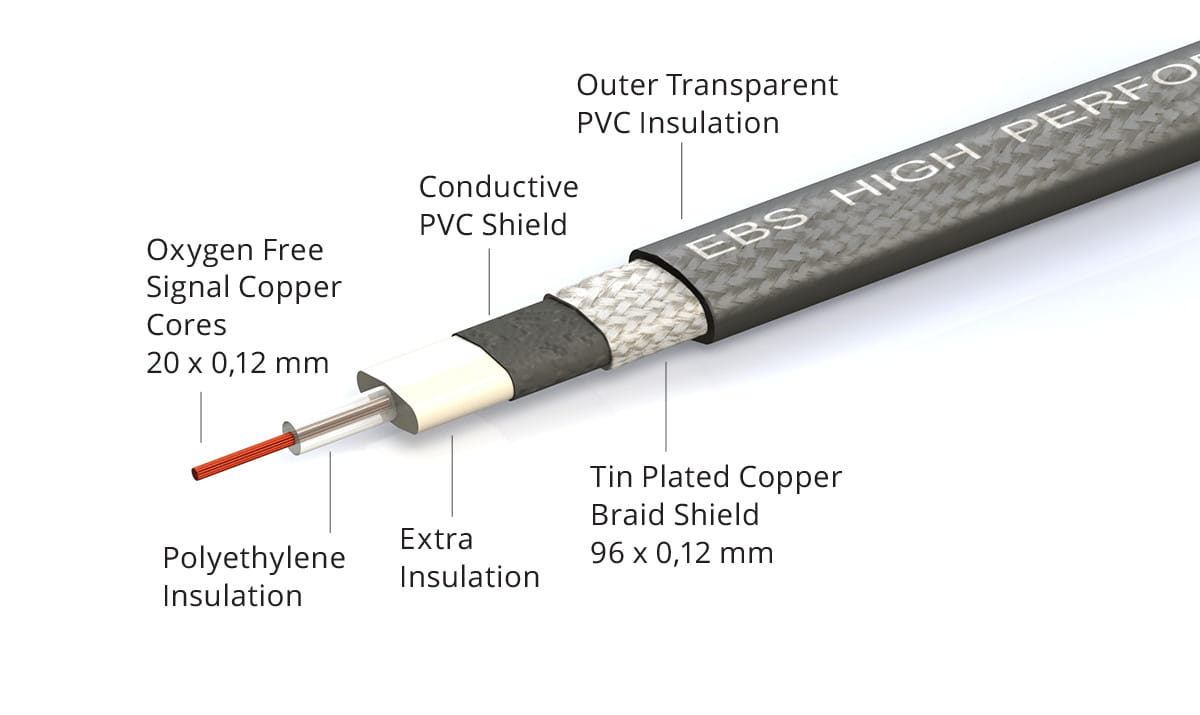 - Podwójnie ekranowany przewód z plecionym oplotem z cynowanej miedzi