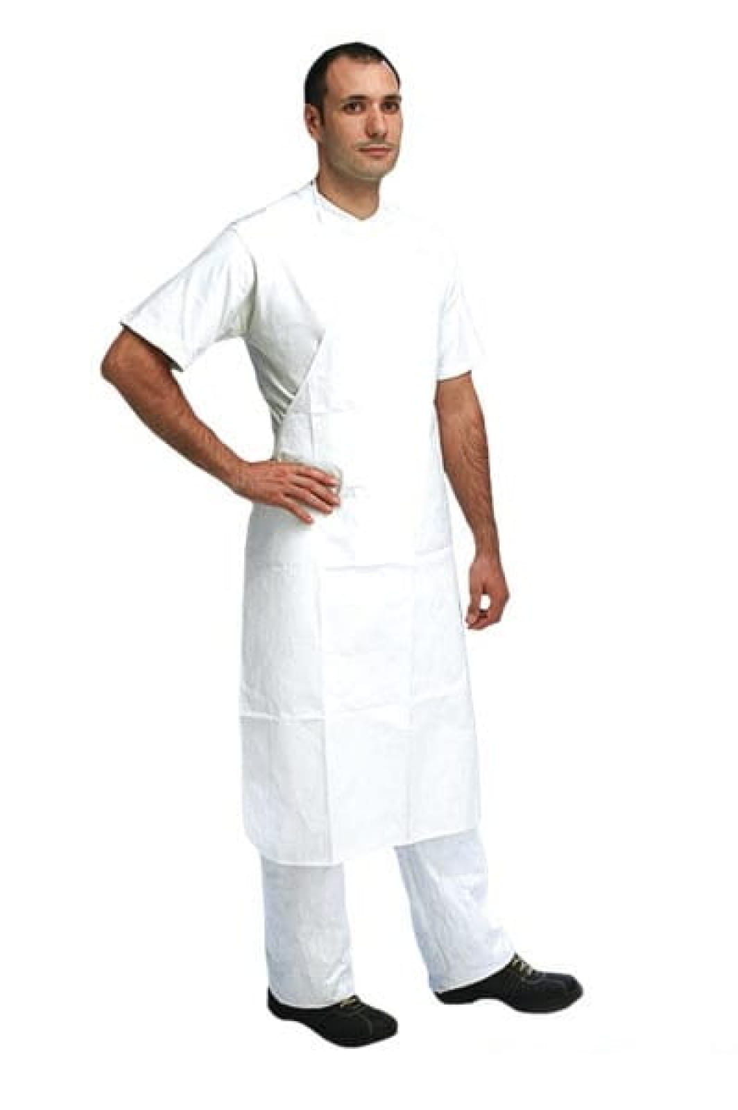 - zakładany na szyję z wiązaniem na paski z tyłu, dzięki czemu można idealnie dopasować fartuch do sylwetki