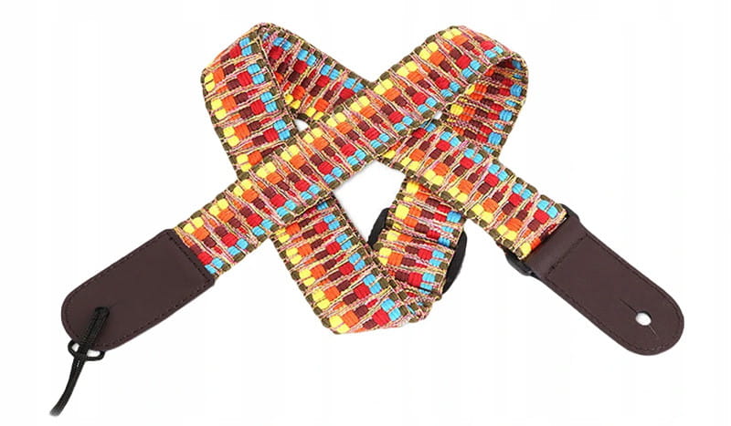 Tkany pasek do ukulele z tkanej bawełnianej taśmy. Regulowana długość, 2 skórzane zaczepy do przymocowania do instrumentu.