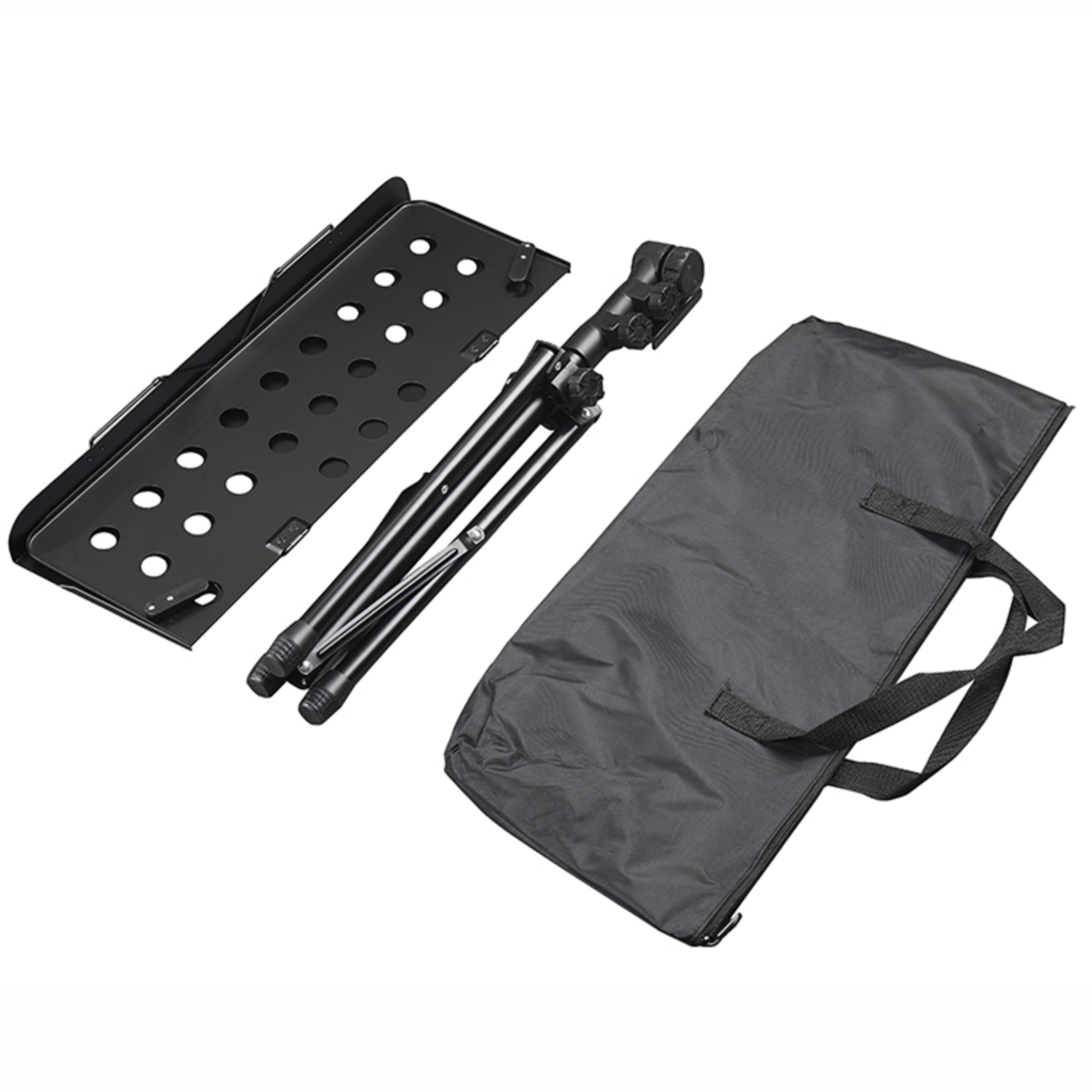 Lekki, stabilny i składany statyw na nuty z płynną regulacją wysokości i kąta nachylenia. Posiada 2 elastyczne dociski podtrzymujące zapisy nutowe. Niewielka waga i gabaryty w połączeniu z dołączanym w komplecie pokrowcem czynią ten statyw wyjątkowo mobilnym. Posiada grubsze, solidniejsze nóżki niż model P-01.