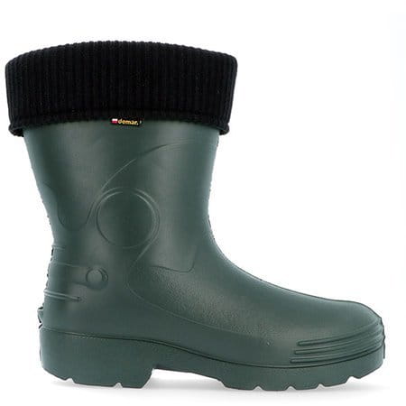 Kalosze FARMER/ DEMAR. Niezwykle lekkie i bardzo funkcjonalne kalosze męskie. Kolor: zielony. Rozmiary: 40-49. Wykonane z pianki EVA, to lekkie tworzywo charakteryzuje się doskonałymi właściwościami termoizolacyjnymi, doskonale izoluje nawet w temperaturze do -20°C. Kalosze chronią stopy przed zimnem i są w pełni wodoszczelne. Posiadają wymienny wkład ocieplający, mają szeroką cholewkę i są wysokie na podbiciu. Wyróżniają się wysoką elastycznością, nawet w niskich temperaturach pozwalają na swobodę ruchu, wspaniale dopasowują się do stopy. W cieplejsze dni można zastąpić ocieplający wkład np. filcowa wyściółką. Doskonała przyczepność do podłoża, komfort termiczny, lekkość i wytrzymałość większa od butów z PVC czy gumy czyni to obuwie niezastąpionym w pracy i rekreacji. Niezastąpione w ogrodzie, gospodarstwie, na działce, do wędkowania, na grzybobranie i na polowanie.
