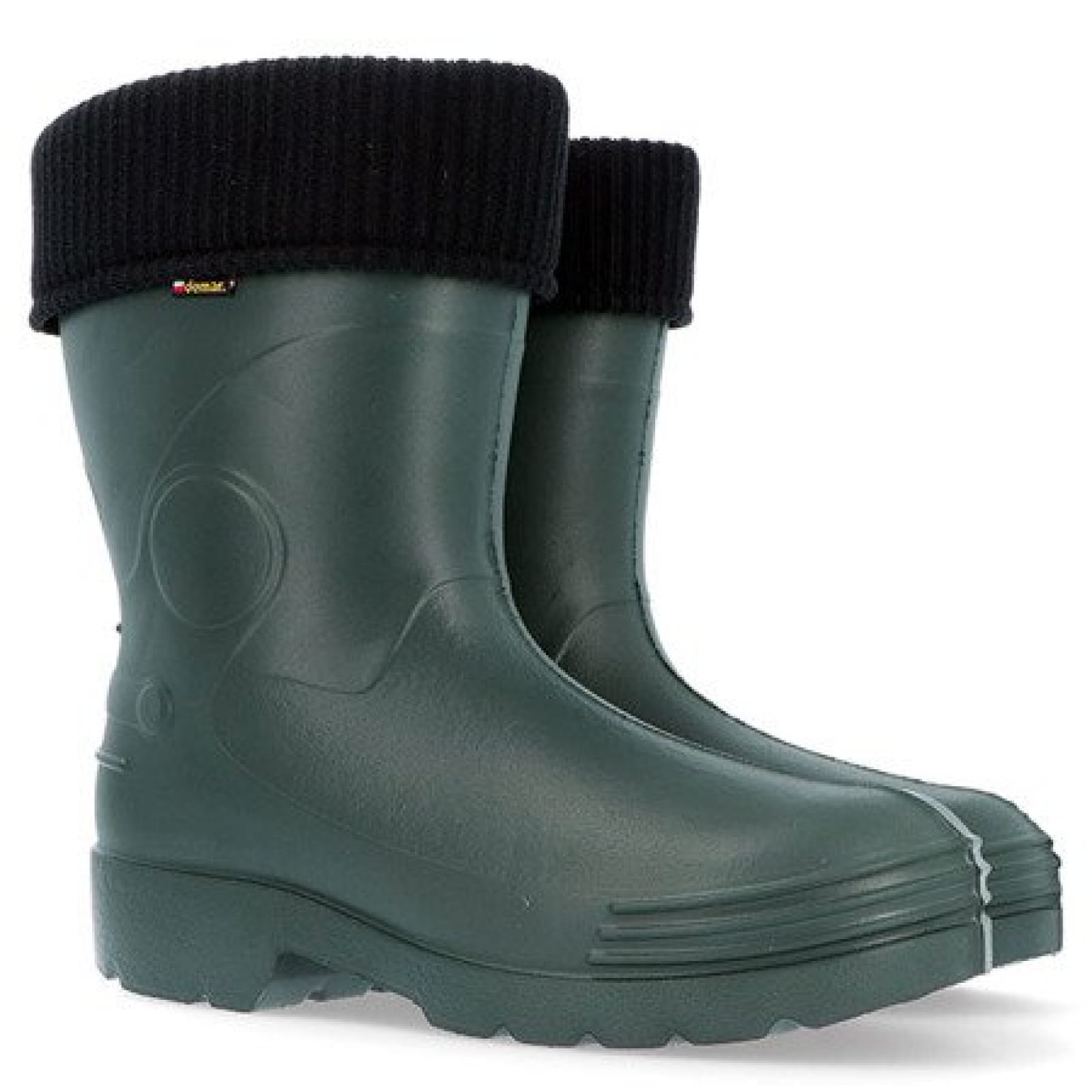Kalosze FARMER/ DEMAR. Niezwykle lekkie i bardzo funkcjonalne kalosze męskie. Kolor: zielony. Rozmiary: 40-49. Wykonane z pianki EVA, to lekkie tworzywo charakteryzuje się doskonałymi właściwościami termoizolacyjnymi, doskonale izoluje nawet w temperaturze do -20°C. Kalosze chronią stopy przed zimnem i są w pełni wodoszczelne. Posiadają wymienny wkład ocieplający, mają szeroką cholewkę i są wysokie na podbiciu. Wyróżniają się wysoką elastycznością, nawet w niskich temperaturach pozwalają na swobodę ruchu, wspaniale dopasowują się do stopy. W cieplejsze dni można zastąpić ocieplający wkład np. filcowa wyściółką. Doskonała przyczepność do podłoża, komfort termiczny, lekkość i wytrzymałość większa od butów z PVC czy gumy czyni to obuwie niezastąpionym w pracy i rekreacji. Niezastąpione w ogrodzie, gospodarstwie, na działce, do wędkowania, na grzybobranie i na polowanie.