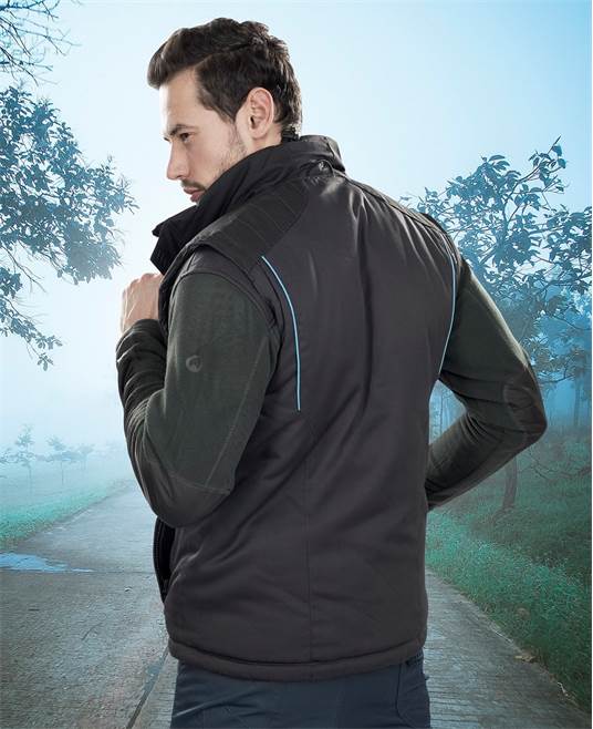 Kamizelka zimowa 4TECH/ ARDON spełnia normy EN 13688(podstawowe wymagania dla odzieży ochronnej)/ EN 342(ochrona przed chłodem). Uniwersalna, designerska kamizelka zimowa. Kolor szaro-czarny. Wykonana z mieszanki 65% poliestru/ 35% bawełny/ gramatura 240 g/m2. Ocieplenie 100% poliestru/ 200 g/m2. Kamizelka posiada zamek błyskawiczny kryty listwą, kołnierz stójkowy, przeszycia na ramionach, funkcjonalne kieszenie, dwie na piersiach i dwie dolne, w tym jedna na suwak, elementy odblaskowe poprawiające widoczność w słabym świetle, elastyczne otwory na ręce, karczek wzmocniony poliestrem 600D OXFORD, wytrzymałym i odpornym na przetarcie, rozciąganie i rozrywanie. Wysokiej jakości materiały pozwalają na komfortowe i długie użytkowanie. Kamizela szczególnie polecana i chętnie użytkowana przez pracowników branży budowlanej, monterów, serwisantów, techników, operatorów maszyn, wszędzie tam, gdzie występuje potrzeba ochrony przed chłodem, nie mówiąc o komforcie i wygodzie. Do pracy na zewnątrz i na halach produkcyjnych, warsztatach, magazynach.