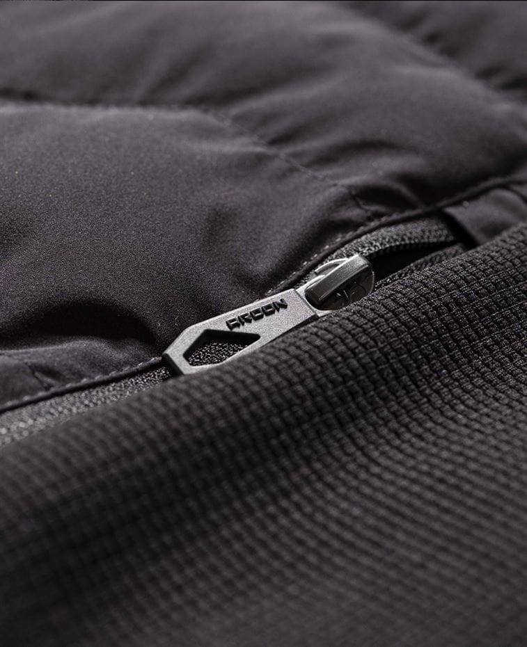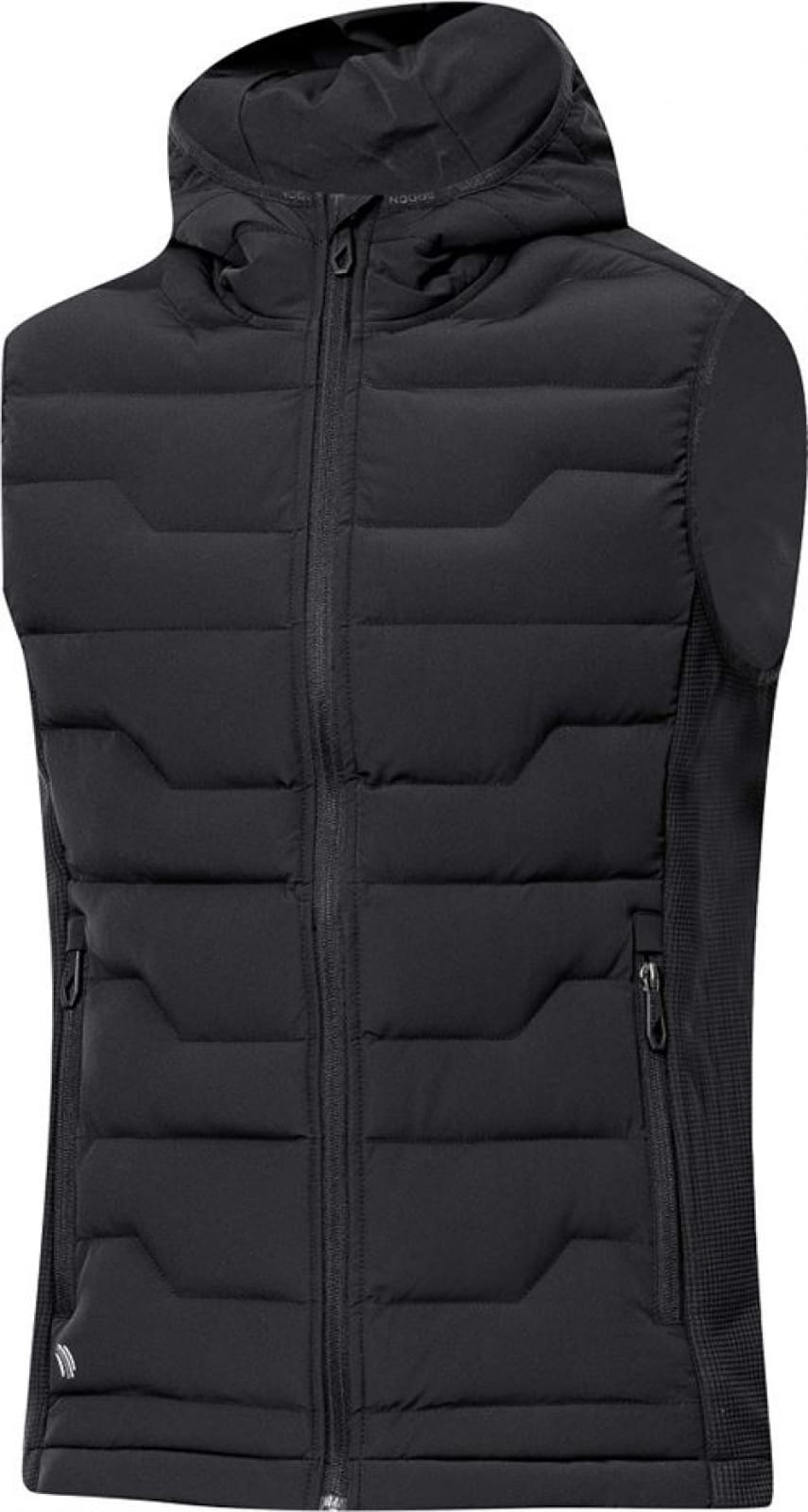 - kamizelka zapinana na zamek z ochroną brody, posiada boczne kieszenie na zamek, całość dopełnia pikowany kaptur