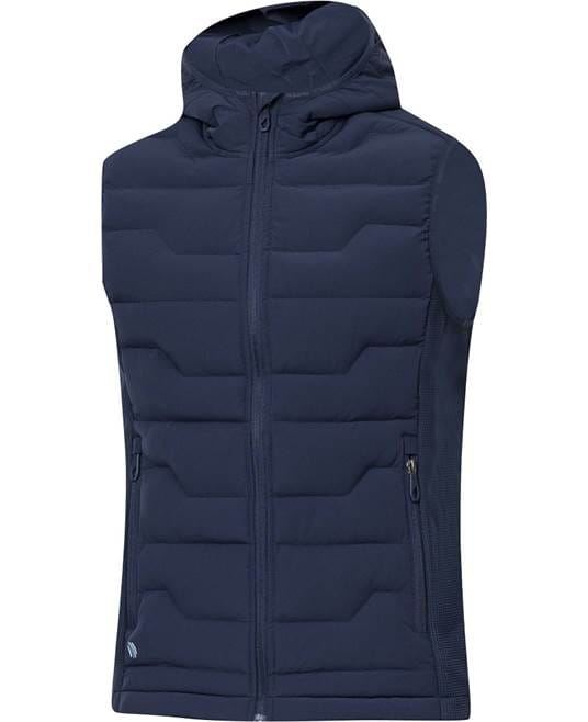 - kamizelka zapinana na zamek z ochroną brody, posiada boczne kieszenie na zamek, całość dopełnia pikowany kaptur