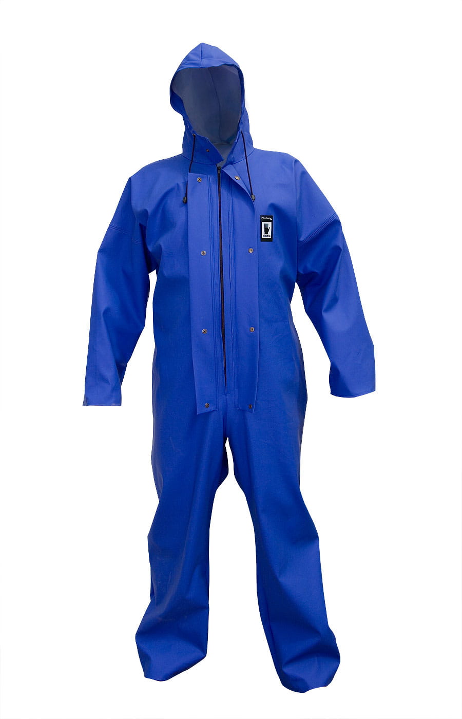 Kombinezon model 104/ PROS spełnia normy EN 13688 (odzież ochronna, wymagania ogólne)/ EN 343 (odzież ochronna, ochrona przed deszczem). Wysokiej jakości wodochronny kombinezon do zadań specjalnych, ochroni przed niesprzyjającymi warunkami, wiatrem, deszczem czy też słoną wodą. Występują w kolorze zielonym i niebieskim w rozmiarach XS/48, S/50, M/52, L/54, XL/56, XXL/58, XXXL/60, XXXXL/62. Wykonane z PLAVITEX materiał na podkładzie poliestrowym, jednostronnie powlekany PVC. Materiał cechuje się zwiększoną odpornością na tarcie, zginanie przy ujemnych temperaturach do -50?C. Zapewnia pełną ochronę w niesprzyjających warunkach atmosferycznych. Technika obustronnego zgrzewania zwiększa wytrzymałość szwów. Kombinezon jednoczęściowy zapinany na zamek kryty podwójną plisą na napy, kaptur zapinany na napy z funkcjonalnym ściągającym sznurkiem. W rękawach i nogawkach zastosowano ściągacze, które zapobiegają przedostawaniu się wody i innych substancji do środka. Odzież tego typu znajduje zastosowanie w ogrodnictwie, rybołówstwie, myciu i czyszczeniu, usługach komunalnych, przemyśle metalurgicznym, elektromaszynowym, mineralnym, spożywczym, platformach wiertniczych i gospodarstwach domowych.
