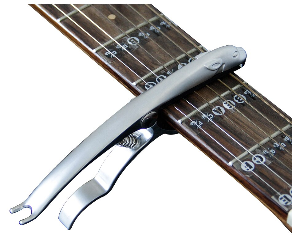 Kapodaster w oryginalnym kształcie (Leopard), przeznaczony do gitar akustycznych, elektrycznych oraz ukulele. Konstrukcja i zastosowane materiały powodują, że struny są dociskane równomiernie, a obsługa jest prosta i szybka. Specjalny kształt jedenj końcówki umożliwia bezpieczne wyjmowanie kołków.