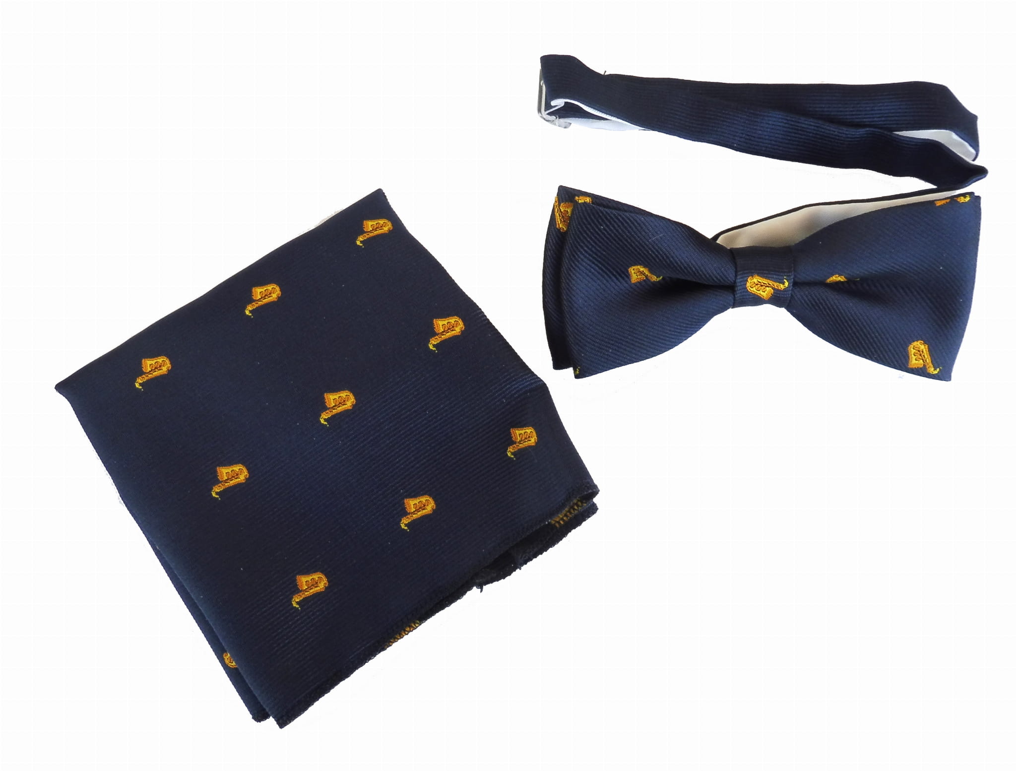 MU04 muzyczna muszka granatowa z saksofonami + poszetka