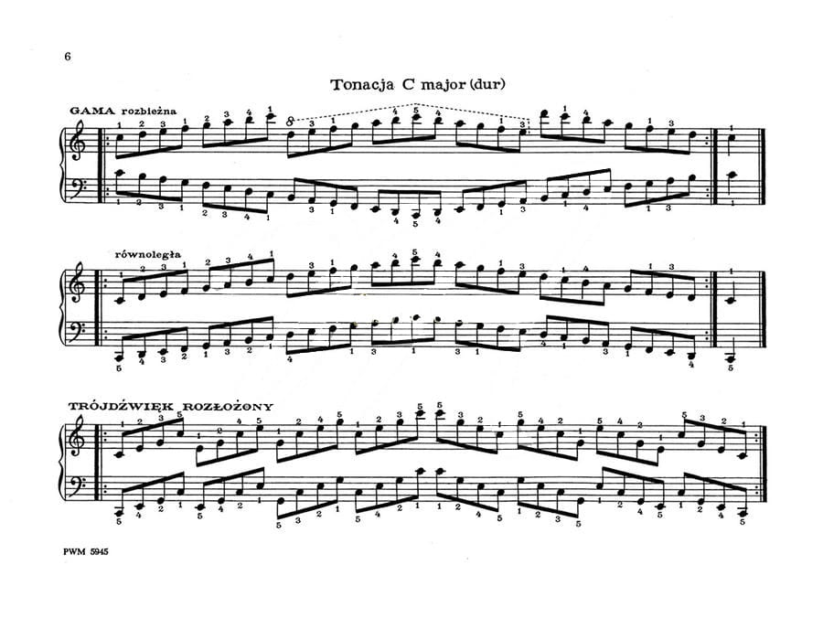 Zeszyt I obejmuje gamy i pasaże na elementarnym stopniu nauczania, w obrębie dwóch oktaw. Ma on na celu zaznajomienie ucznia ze skalą dźwiękową systemu major i minor, podstawowego dla muzyki europejskiej, oraz przyswojenie najczęściej spotykanych układów dźwiękowych i odpowiadającym im skojarzeń ruchowych obu rąk.