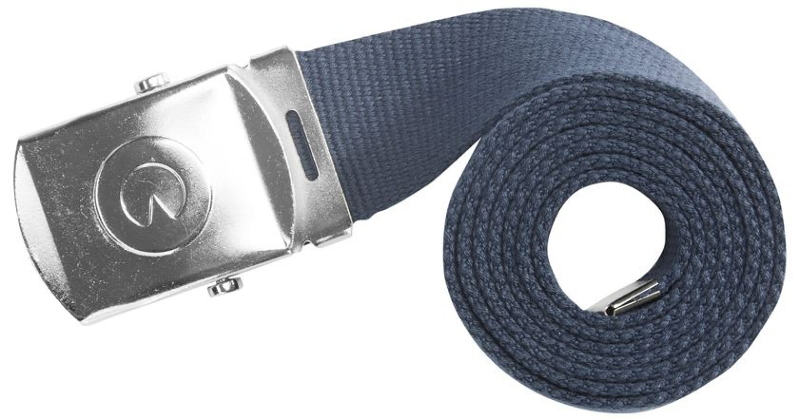 Pasek tekstylny z metalową klamrą z logo. Długość 140cm, szerokość 4cm.