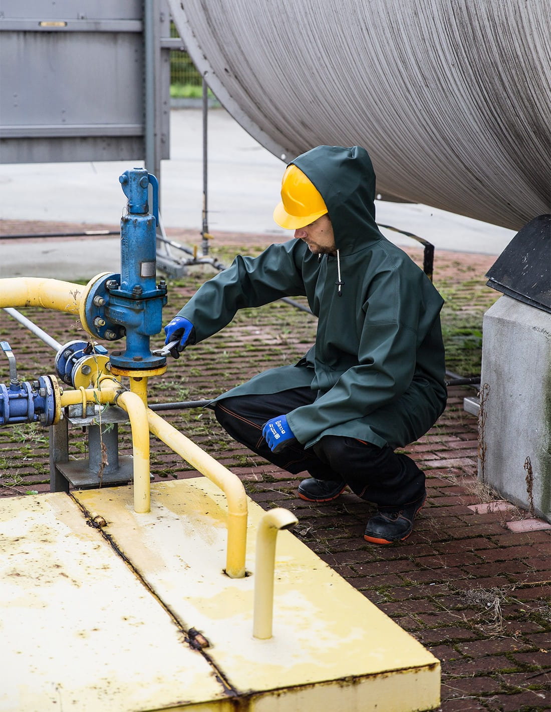 Płaszcz przeznaczony do pracy w trudnych warunkach atmosferycznych, dedykowany do pracy w strefach zagrożenia wybuchem. Technika obustronnego zgrzewania zwiększa wytrzymałość szwów. Zastosowano wygodne zapinanie na napy kryte plisą i regulowany kaptur. Dwie kieszenie przykryte patkami w celu ochrony przed dostawaniem się wilgoci do ich wnętrza. Brak elementów metalowych na zewnątrz zapewnia zachowanie właściwej elektrostatyki.