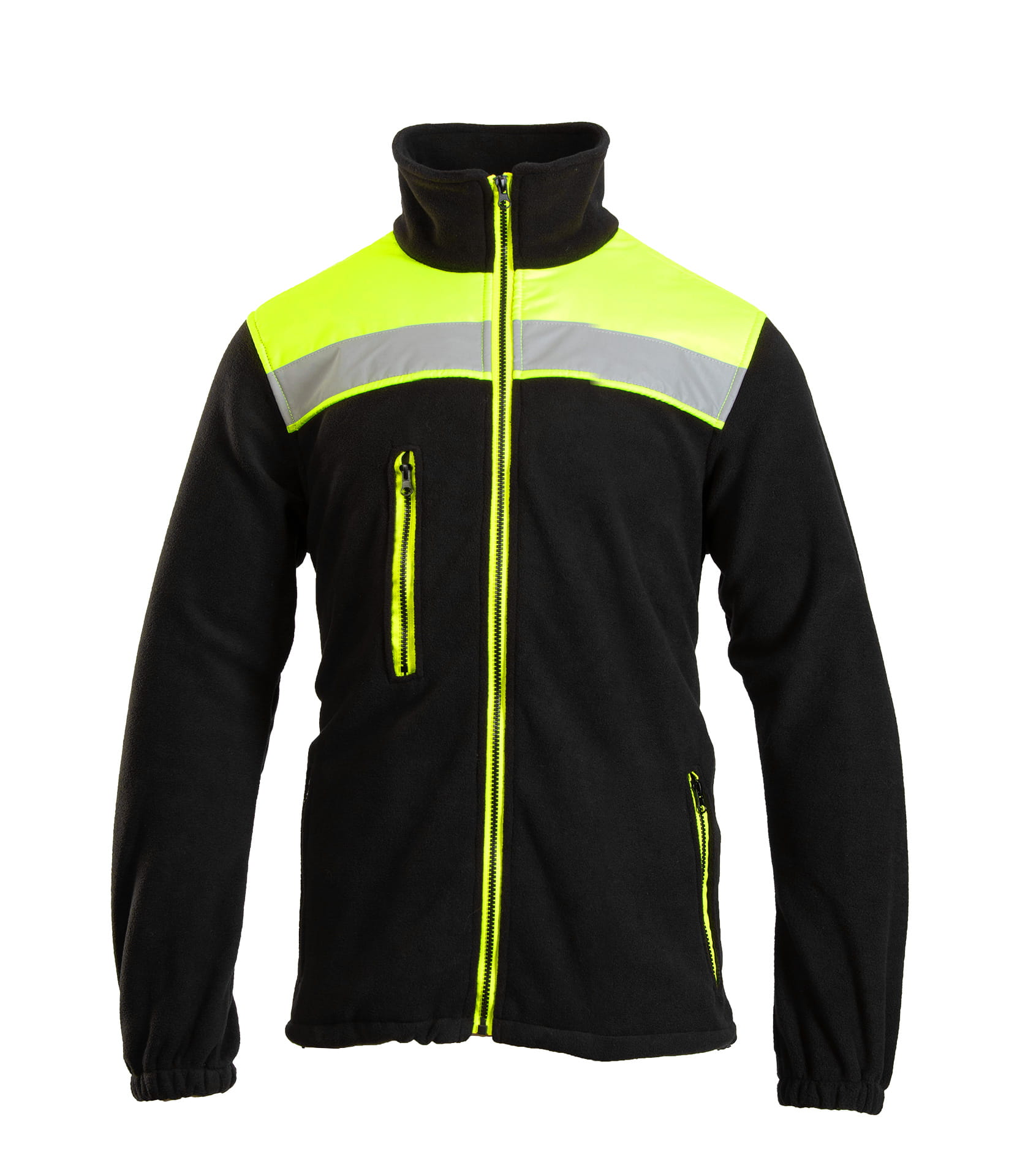 Rodzaj zapięcia: zapinana na zamek kostkowy. Materiał: Polar - 100% poliester, polar 320 g/m2. Budowa/szycie: na ramionach wzmocnienia z materiału OXFORD, dodatkowe wzmocnienia na łokciach. Kieszenie: dwie kieszenie boczne, kieszenie zapinane na zamek, kieszeń na klatce piersiowej. Rękawy/mankiety: ściągacze w rękawach. Regulacja obwodu: ściągacz w pasie. Kaptur: brak. Elementy odblaskowe: pasy odblaskowe, Gramatura: 320g/m2; Materiał: Poliester (100%);