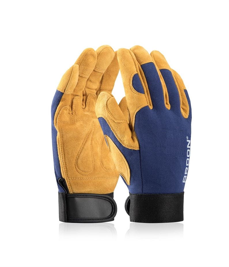 Specjalne rękawice ochronne AUGUST, spełniają normy EN 21420 (ogólne normy dotyczące rękawic ochronnych )/ EN 388 (rękawice chroniące przed zagrożeniami mechanicznymi) CAT. II. Rękawice kombinowane: dłoń z dwoiny bydlęcej, grzbiet z niebieskiego poliestru i elastyny, wyściółka w dłoni eliminująca odciski. Wzmocnienie skórą kciuka i palca wskazującego zwiększa wytrzymałość na zniszczenie i doskonale chroni dłoń przed urazami, do tego poprawia chwyt i przyczynia się do bardziej precyzyjnej pracy. Rękawice wykończone zapinanym mankietem na rzep, idealnie się dopasowują i nie zsuwają podczas pracy. Wykazują się dobrą odpornością na ścieranie, przecięcia, rozdarcia, przekłucia, uderzenia. Przeznaczone do prac lekkich i ciężkich. Doskonałe do prac remontowo-budowlanych, transportu, przeładunku, idealne dla operatorów maszyn i urządzeń, mechaników. Nowoczesny design, dwukolorowe, elastyczne i funkcjonalne sprawiają, że każda praca staje się przyjemniejsza i komfortowa. Produkty firmy ARDON zapewniają ochronę każdemu użytkownikowi i są niesamowicie wygodne.