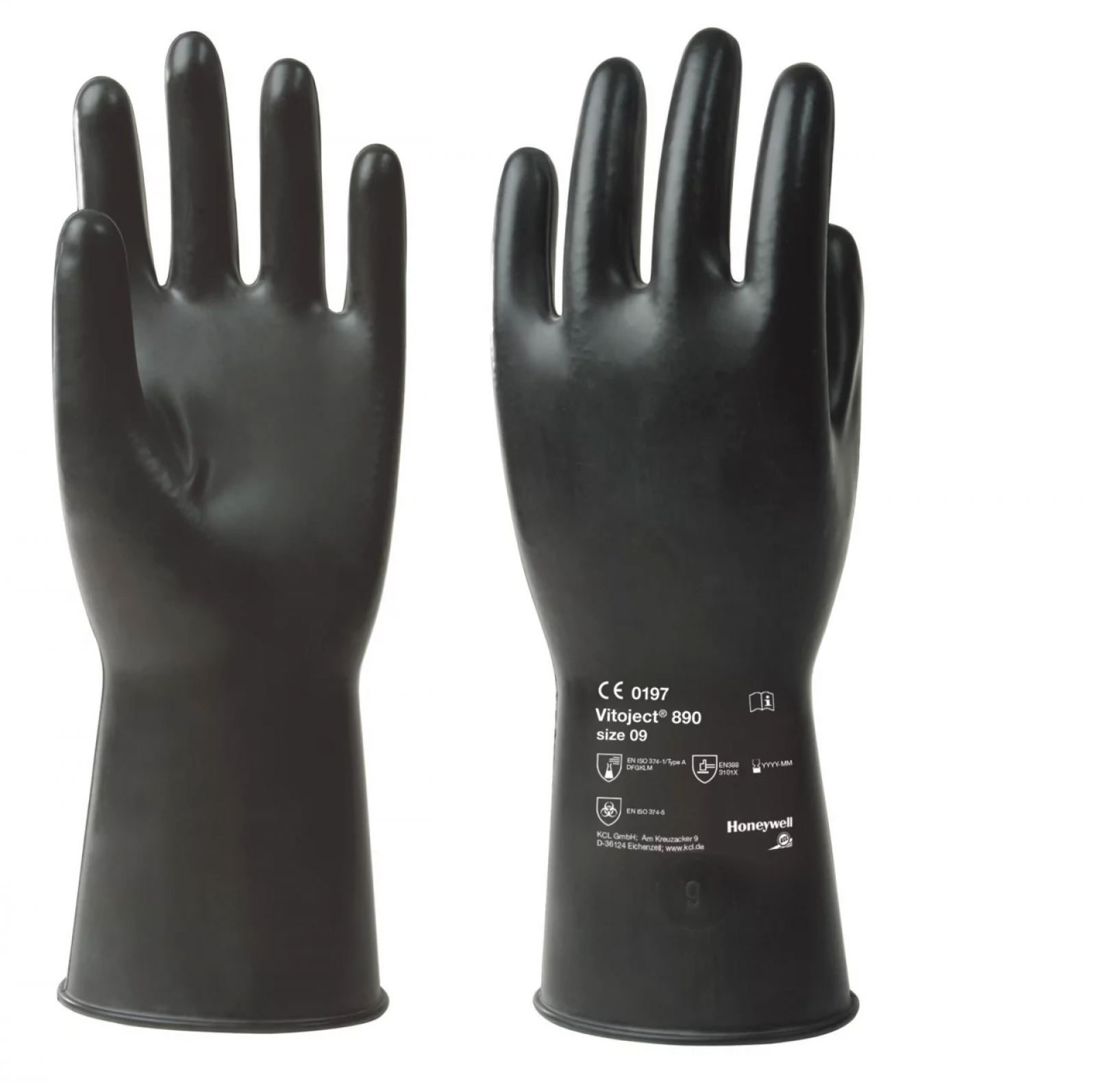 Rękawice chemoodporne KCL-890 Vitoject-11 spełniają normy EN 388 (rękawice ochronne chroniące przed zagrożeniami mechanicznymi), EN 374 (rękawice ochronne chroniące przed zagrożeniami chemicznymi i bakteriologicznymi). Kategoria III (wysokie ryzyko, ochrona przed najpoważniejszymi urazami, np. agresywnymi czynnikami chemicznymi).