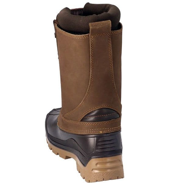 Śniegowce Caribou PRO/ DEMAR. Ocieplane, bardzo wygodne obuwie, dla myśliwych, wędkarzy i wszystkich amatorów zimowej rekreacji. W górnej części wodoodporna skóra nubukowa, dolna część pokryta nieprzemakalnym termokauczukiem, buty są miękkie, nie stawiają oporu przy zginaniu i nie zmieniają swoich właściwości w niskich temperaturach. Wysoki fason dobrze stabilizuje kostkę i zabezpiecza przed urazami w trudnym terenie. Wewnątrz wielowarstwowy wymienny wkład ocieplający (100% wełny). Wiązanie idealnie dopasowuje obuwie do łydki i zabezpiecza przed dostaniem się do wewnątrz śniegu, ściółki itp. Doskonała amortyzacja w części piętowej i antypoślizgowy rzeźbiony protektor gwarantują wygodę i bezpieczeństwo w niekorzystnych terenowo i pogodowo warunkach.