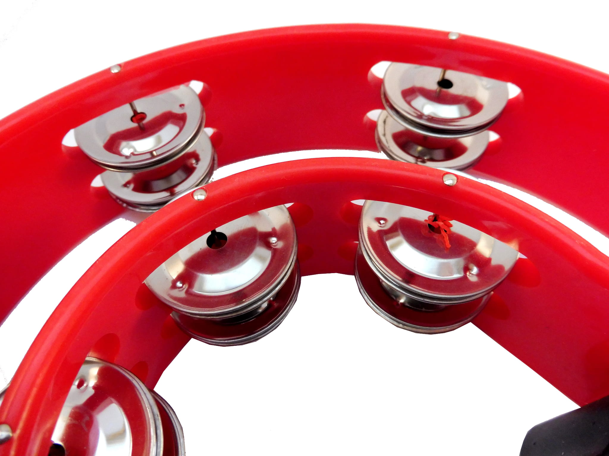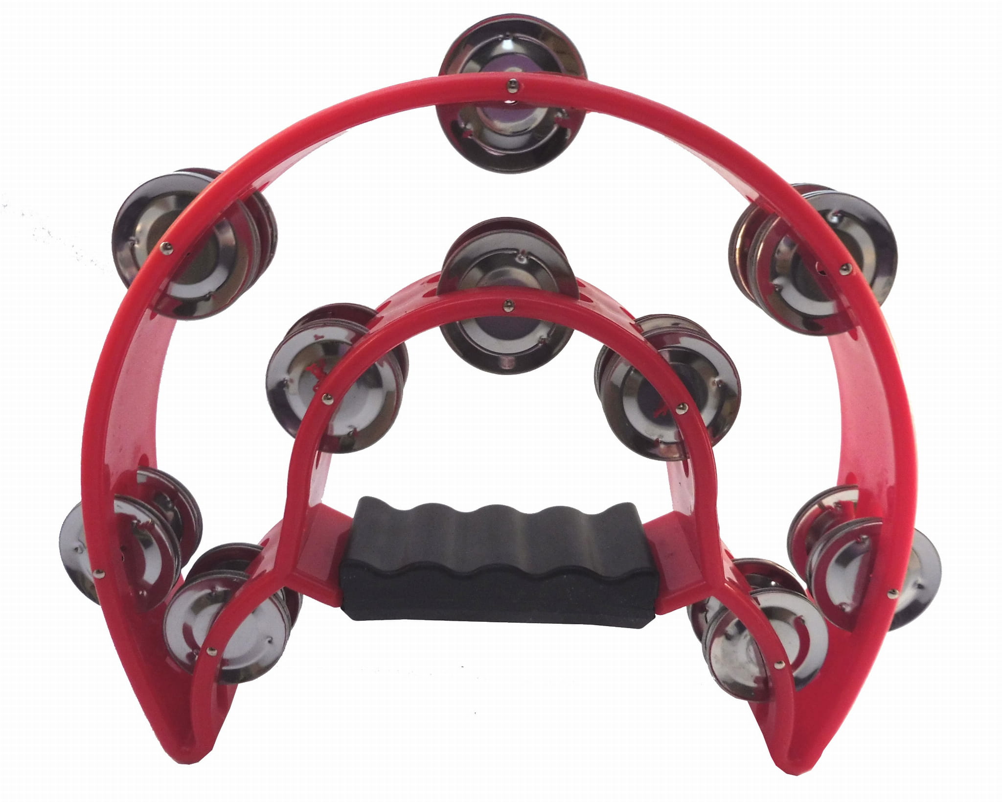 Tamburyno solowe w kształcie podwójnego półksiężyca z wygodnym, profilowanym uchwytem. Wykonane z trwałego, odpornego na uszkodzenia plastiku. Posiada dwa rzędy dzwonków ułożonych w parach, w sumie 10 par.