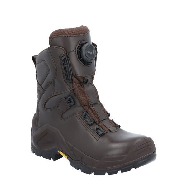Trzewiki myśliwskie RAPID BOA WR/ DEMAR. Obuwie do zadań specjalnych dla aktywnych, naszpikowane technologiami podnoszącymi jakość i wytrzymałość w extremalnych warunkach, bez względu na pogodę i podłoże. Zabudowane, wysokie, odporne na uszkodzenia. Wykonane z trwałej skóry licowej. Specjalna włóknina termoizolacyjna efektywnie utrzymuje ciepło wewnątrz. Bardzo wygodny system BOA zapewnia dopasowanie, zapinanie i szybkie rozpinanie obuwia, jest trwały, lekki, szybki i wygodny w obsłudze. Bezszwowa membrana paroprzepuszczalna WATERPROOF odprowadza wilgoć na zewnątrz buta, cholewka jest całkowicie wodoszczelna a woda nie dostaje się do wnętrza buta nawet po przeniknięciu skóry. Wielką zaletą tego systemu jest niższa waga obuwia po przemoczeniu oraz łatwiejsze i krótsze suszenie obuwia. Podeszwa Vibram gwarantuje doskonałą przyczepność do podłoża, świetną amortyzację i odporność na ścieranie. Perfekcyjnie zaprojektowany protektor zapewnia stabilność, wygodę i bezpieczeństwo w wymagających warunkach, jak nierówne, śliskie powierzchnie terenu górzystego i leśnego. Buty posiadają podpodeszwę o właściwościach antyprzebiciowych typu Kevlar. Wytrzymałe trzewiki dla myśliwych. Cieszą się popularnością i uznaniem również wśród wspinaczy. Idealne do każdej aktywności związanej z wielogodzinnymi wędrówkami po skalistych, wymagających nawierzchniach.