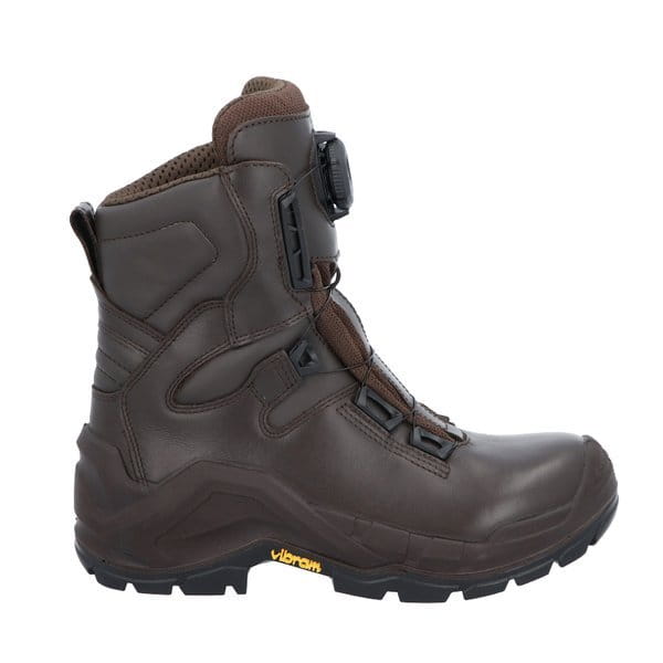 Trzewiki myśliwskie RAPID BOA WR/ DEMAR. Obuwie do zadań specjalnych dla aktywnych, naszpikowane technologiami podnoszącymi jakość i wytrzymałość w extremalnych warunkach, bez względu na pogodę i podłoże. Zabudowane, wysokie, odporne na uszkodzenia. Wykonane z trwałej skóry licowej. Specjalna włóknina termoizolacyjna efektywnie utrzymuje ciepło wewnątrz. Bardzo wygodny system BOA zapewnia dopasowanie, zapinanie i szybkie rozpinanie obuwia, jest trwały, lekki, szybki i wygodny w obsłudze. Bezszwowa membrana paroprzepuszczalna WATERPROOF odprowadza wilgoć na zewnątrz buta, cholewka jest całkowicie wodoszczelna a woda nie dostaje się do wnętrza buta nawet po przeniknięciu skóry. Wielką zaletą tego systemu jest niższa waga obuwia po przemoczeniu oraz łatwiejsze i krótsze suszenie obuwia. Podeszwa Vibram gwarantuje doskonałą przyczepność do podłoża, świetną amortyzację i odporność na ścieranie. Perfekcyjnie zaprojektowany protektor zapewnia stabilność, wygodę i bezpieczeństwo w wymagających warunkach, jak nierówne, śliskie powierzchnie terenu górzystego i leśnego. Buty posiadają podpodeszwę o właściwościach antyprzebiciowych typu Kevlar. Wytrzymałe trzewiki dla myśliwych. Cieszą się popularnością i uznaniem również wśród wspinaczy. Idealne do każdej aktywności związanej z wielogodzinnymi wędrówkami po skalistych, wymagających nawierzchniach.