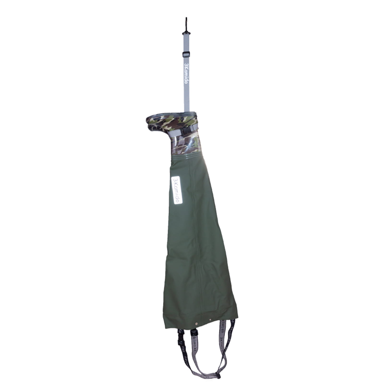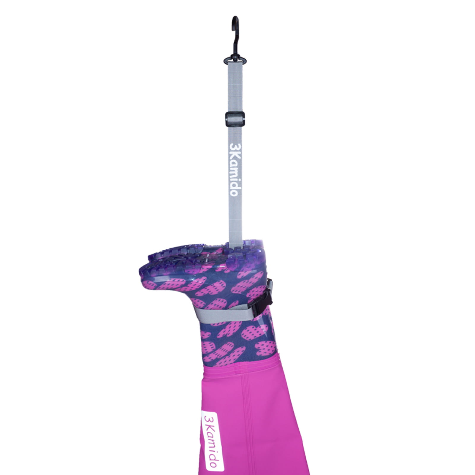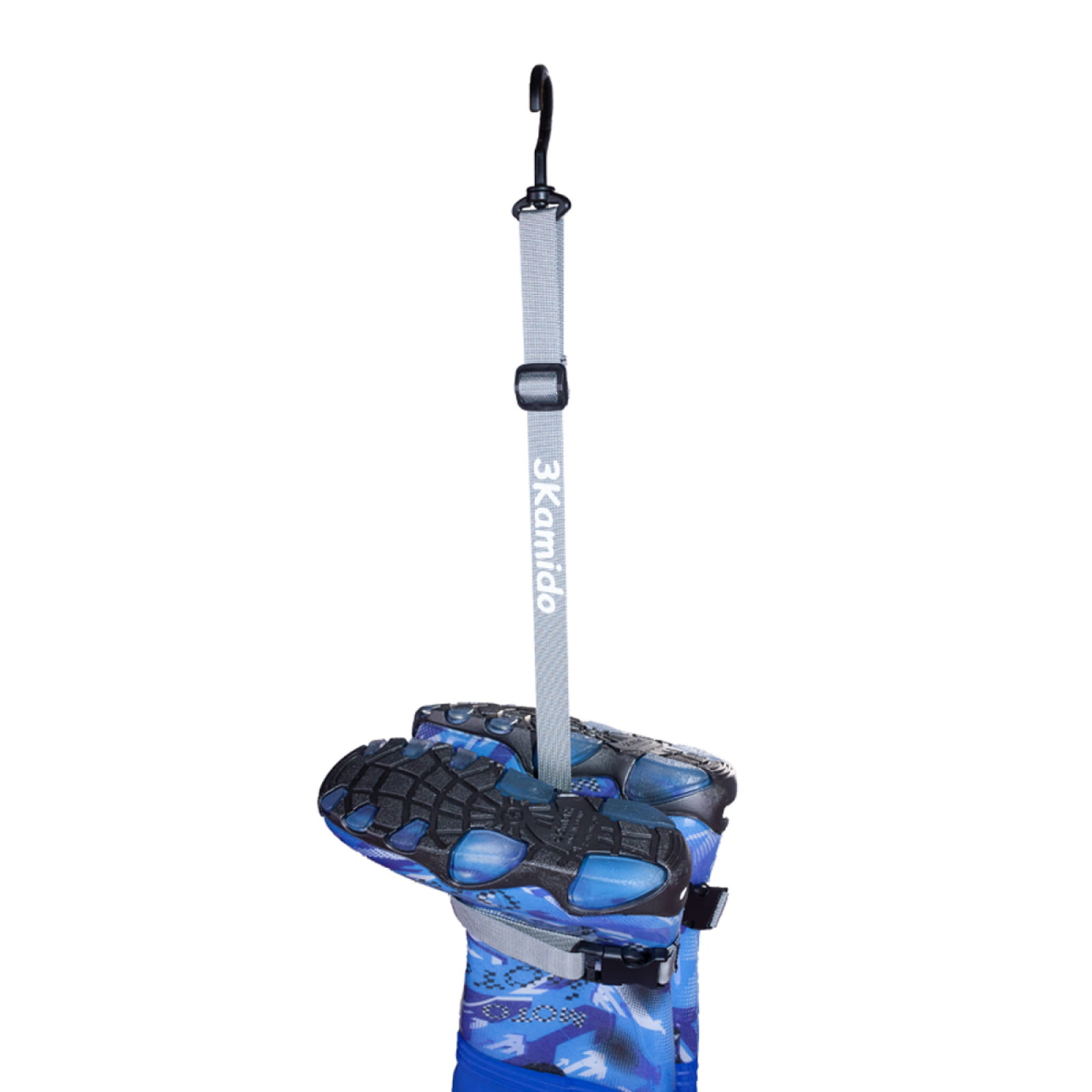 Umieść kalosz w pętli, zatrzaśnij klamrę i zawieś.